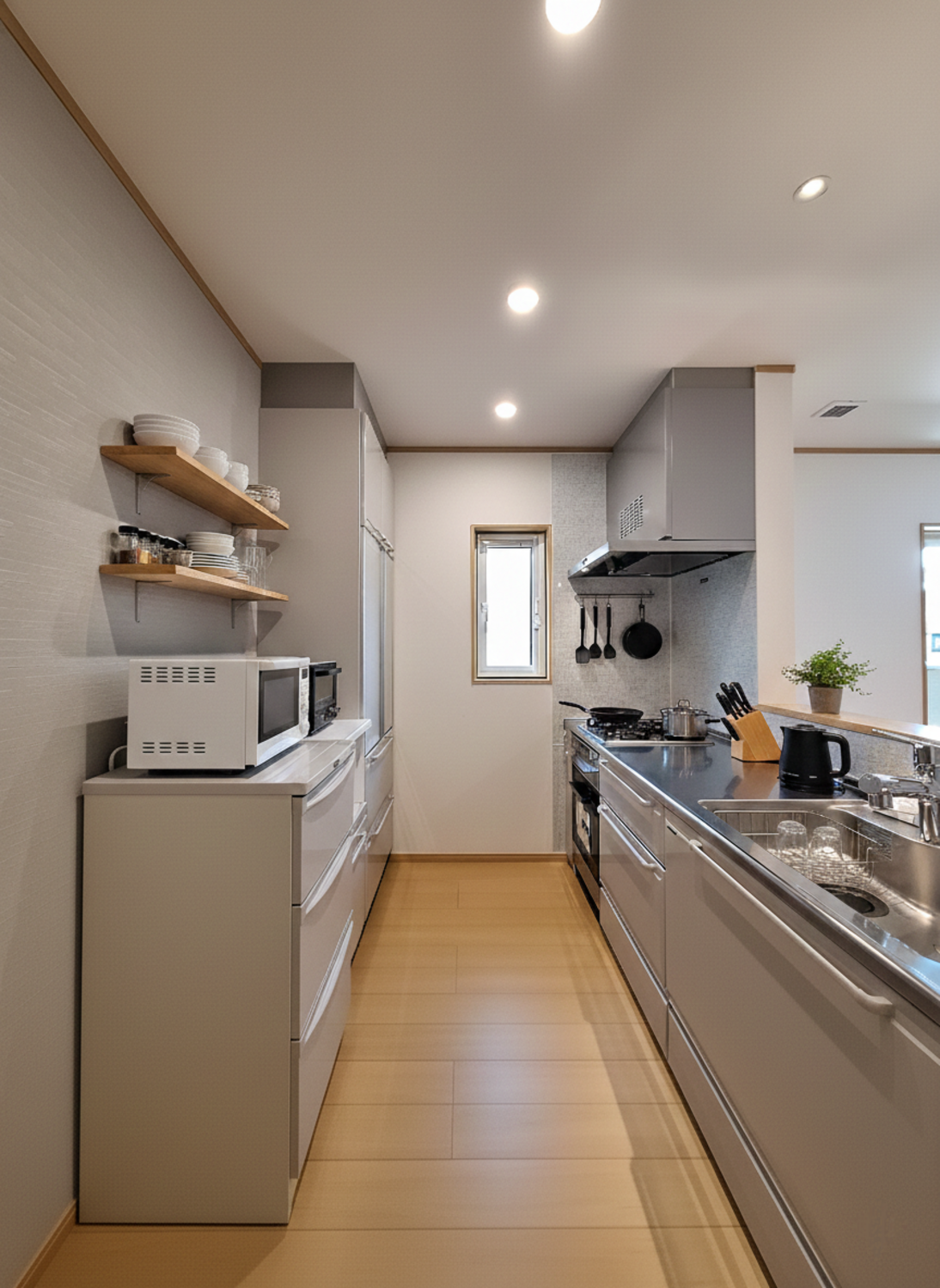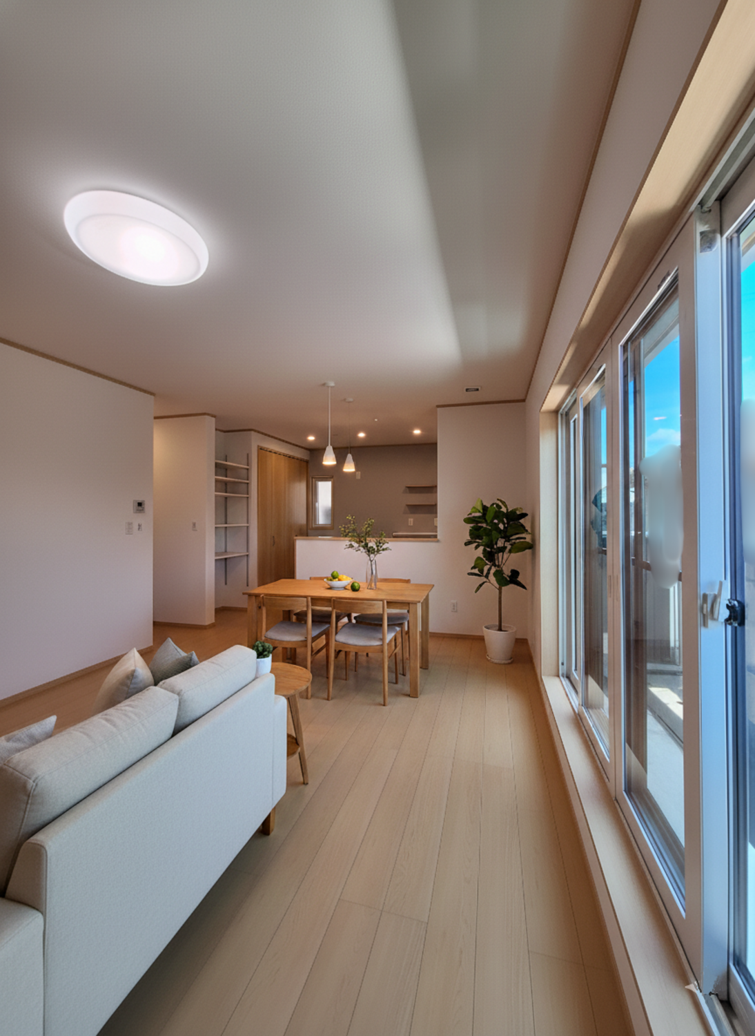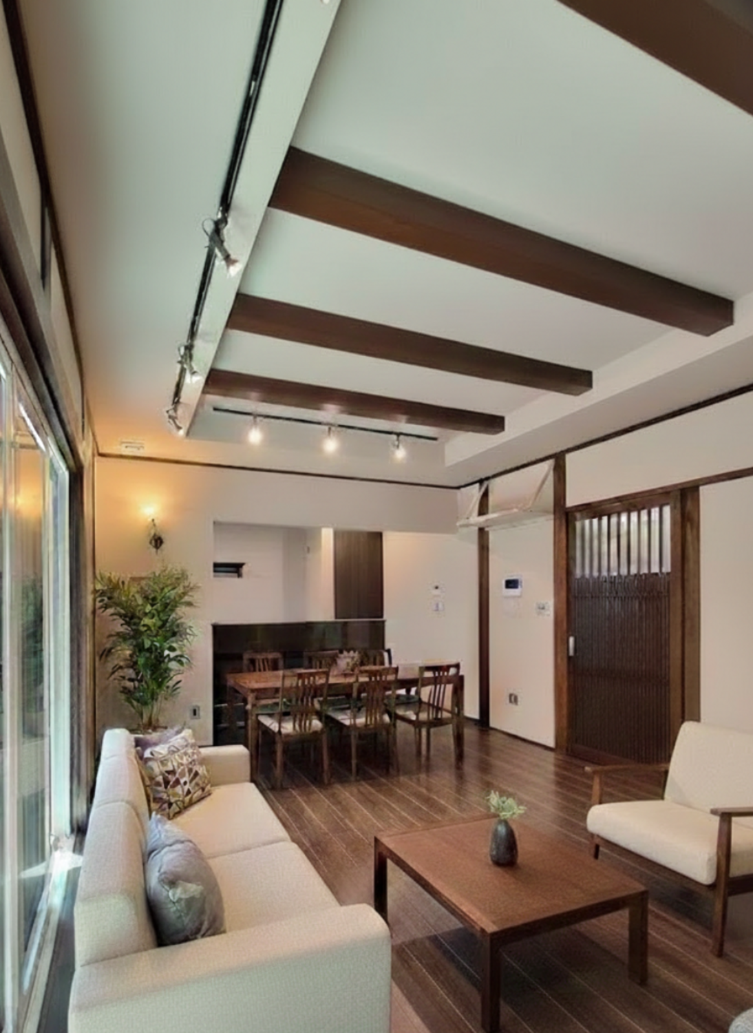 和の趣と現代的なデザインが融合した美しい室内で木の質感が際立つ内装で温かみのある空間になります。