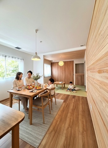 伝統的な畳スペースと現代的なフローリングが調和した開放的な空間です。家族の憩いの場や客間としても最適です。