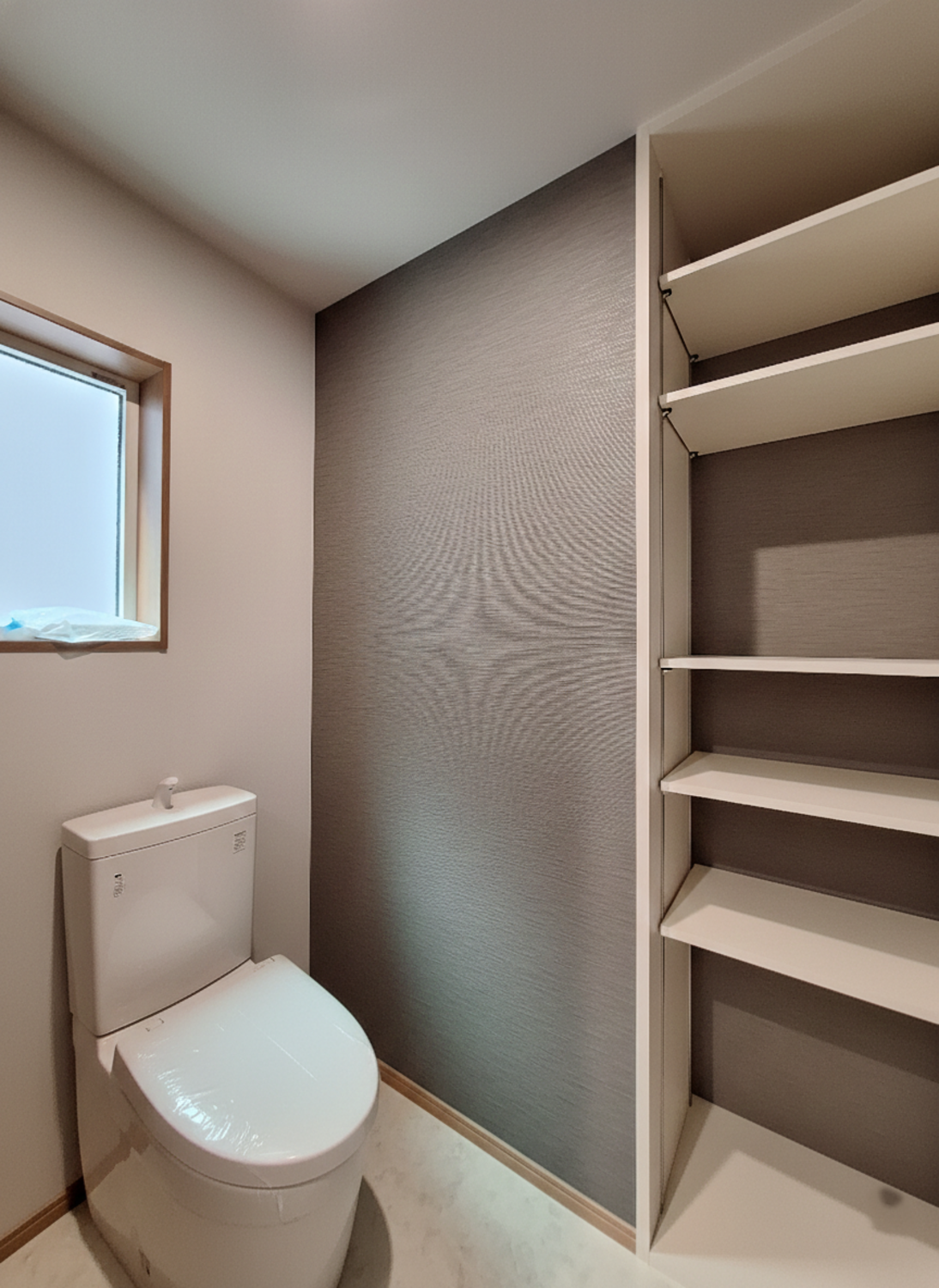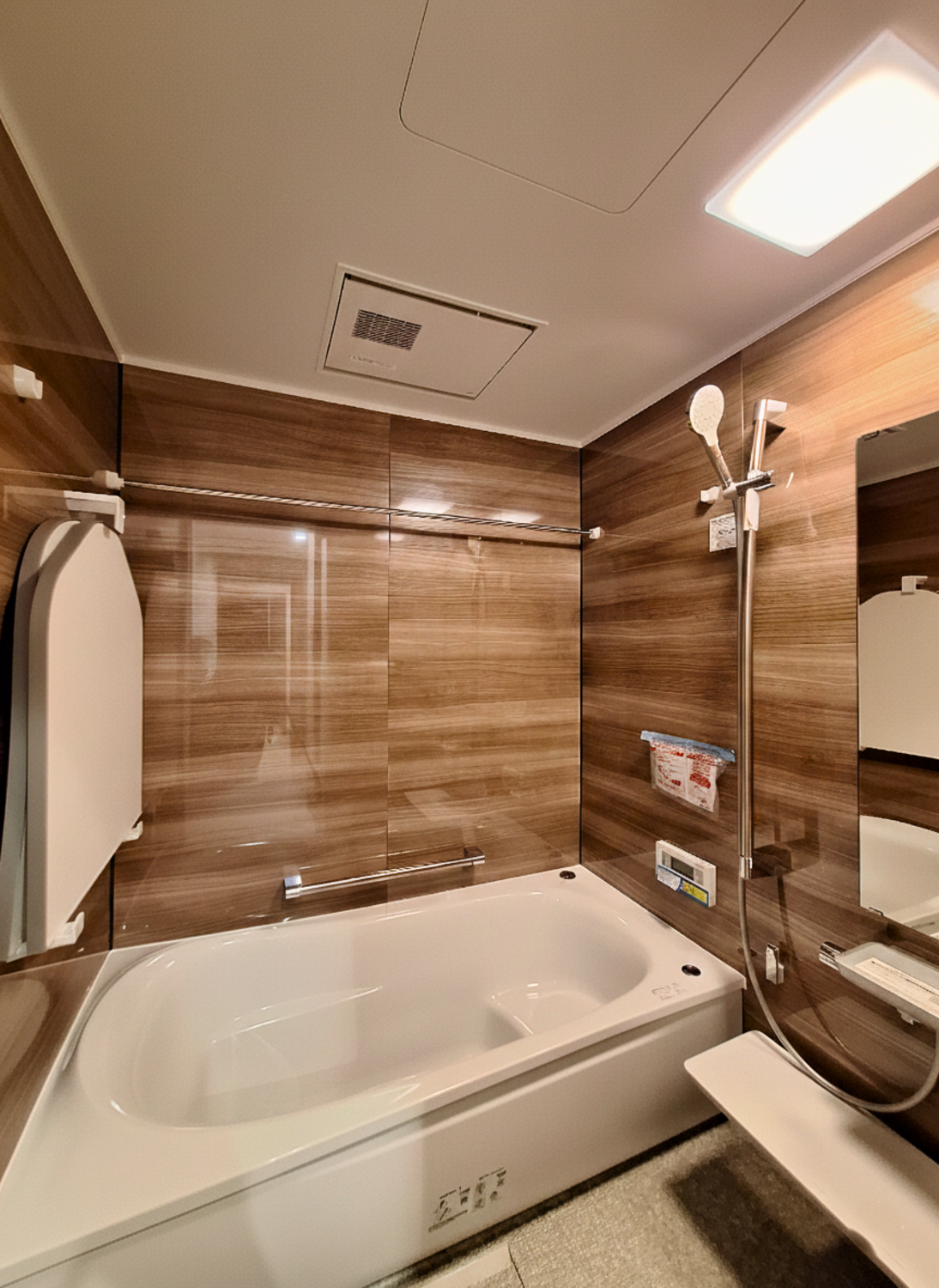 木目が美しい引き戸や、石目調のアクセントウォールが落ち着いた雰囲気を演出します。